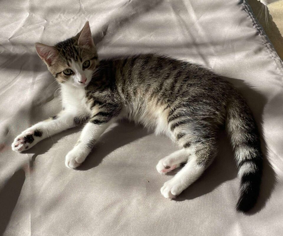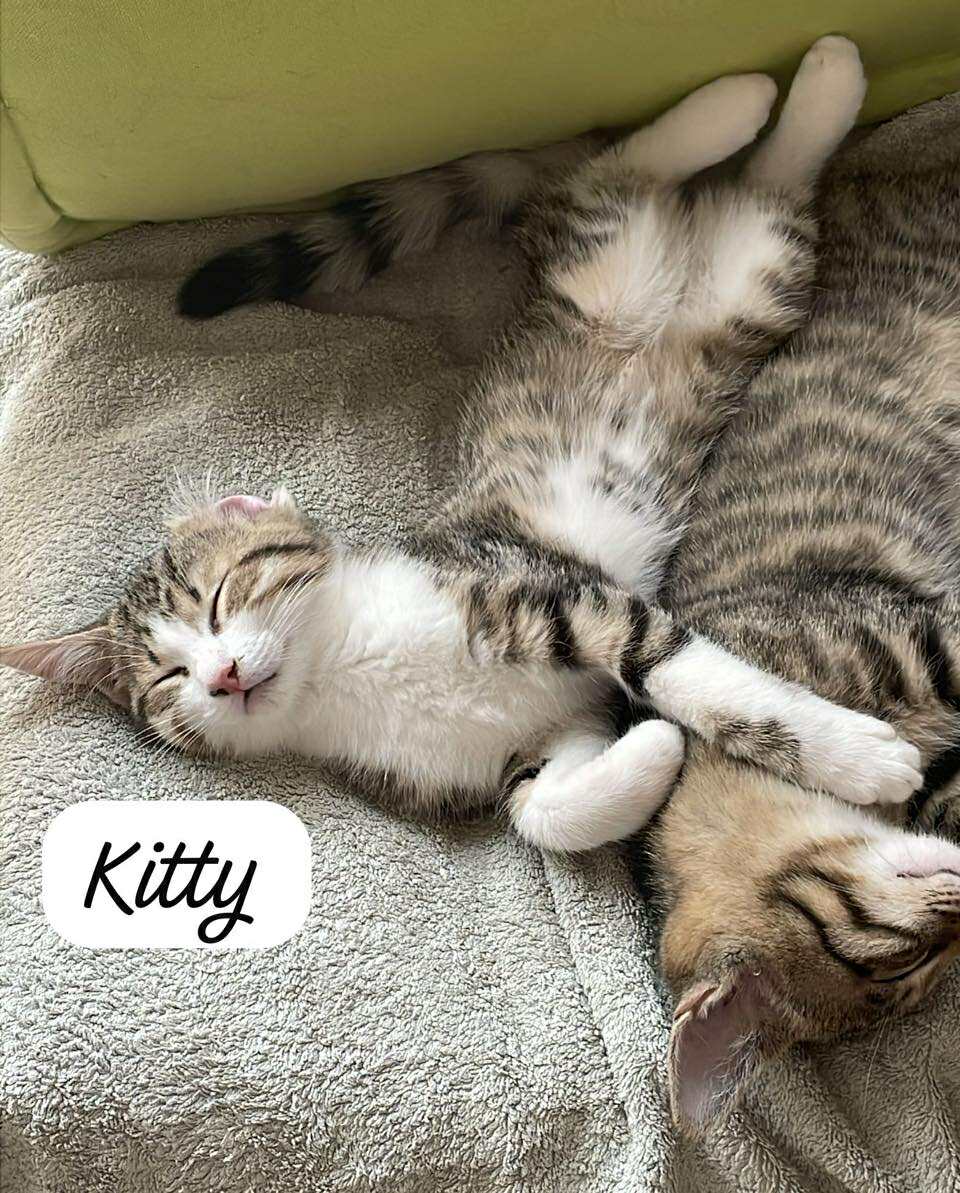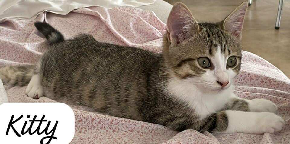 Kitty est arrivée à l’association avec ses frères Athos et Aramis, sa sœur Abby et leur maman Chrisy. Plus indépendante, elle aime garder son petit jardin secret et adore observer le monde !