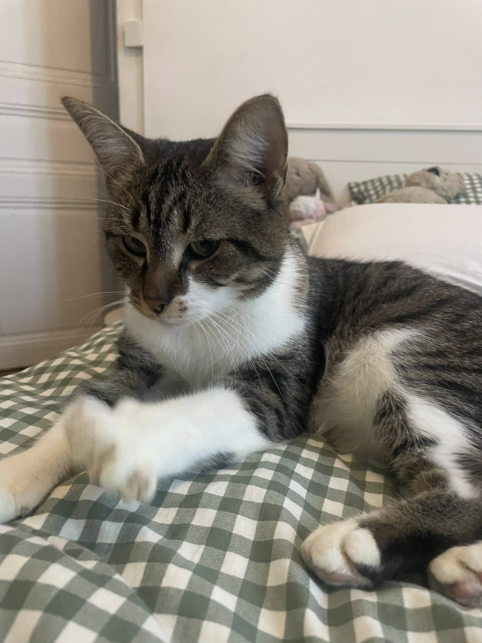 Bib est un petit chat très câlin, proche de l’humain et toujours en demande de présence. Il adore la compagnie et les moments de tendresse, et s’épanouit vraiment lorsqu’il peut partager le quotidien de ses humains.