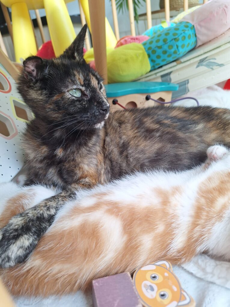 Noctali, adorable petite minette, nous a été confiée par une gentille mamie qui prenait soin d’elle et de ses deux petits « Pokémons ». Afin de leur offrir un avenir plus sûr et une chance de trouver une vraie famille, elle a souhaité nous les confier.